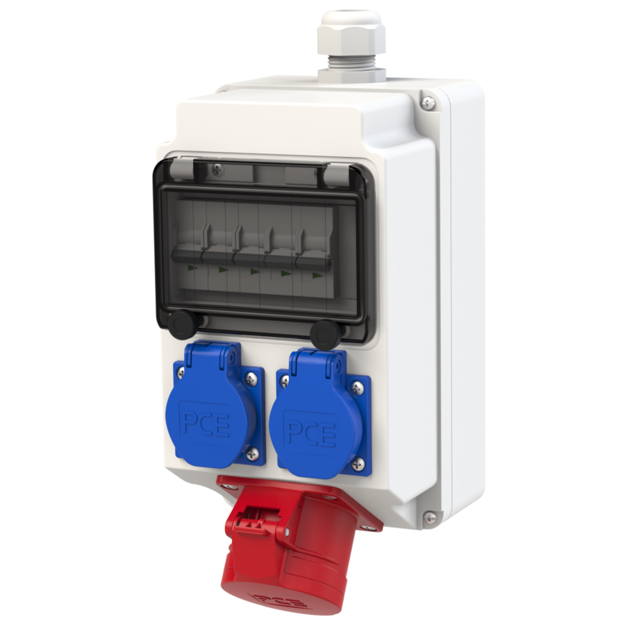 2xSK-Steckdose 16A 250V IP54 abgesichert ü. 2xLS 16A 1p C
