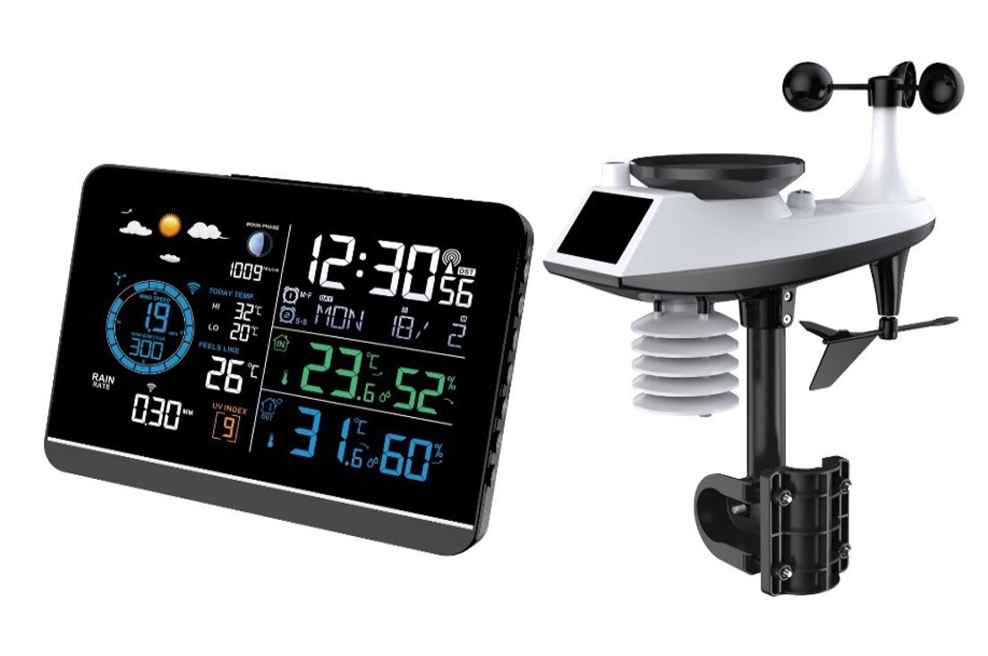 Temperatur, Luftfeuchtigkeit, Luftdruck, Regen, Wind, Licht- und UV-Index, Wettervorhersage, Level 4-Anzeigehinterleuchtung, Funksteuerzeit, Kalender, Alarme, Schlummern, Mondphasen
