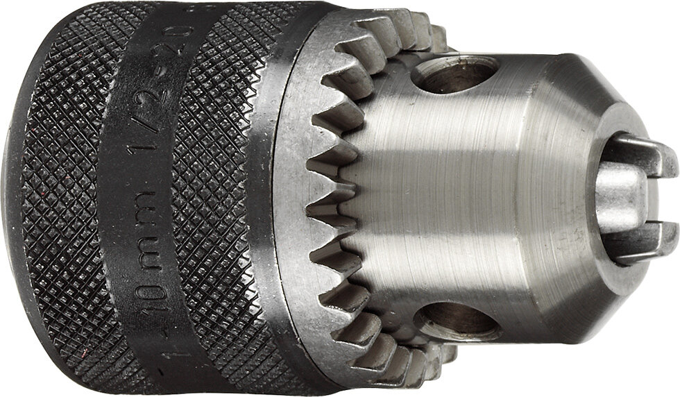 Das schlagfeste kwb Zahnkranz-Bohrfutter, nach DIN 6349 L verfügt über ein Form B-Innengewinde. Die Bohrung für den Einsatz der Konter-Schraube als Linkslauf-Sicherung ist vorhanden. Das Bohrfutter mit S2 Schlüssel ist für alle rechts und links laufende Standard-Bohrmaschinen geeignet.