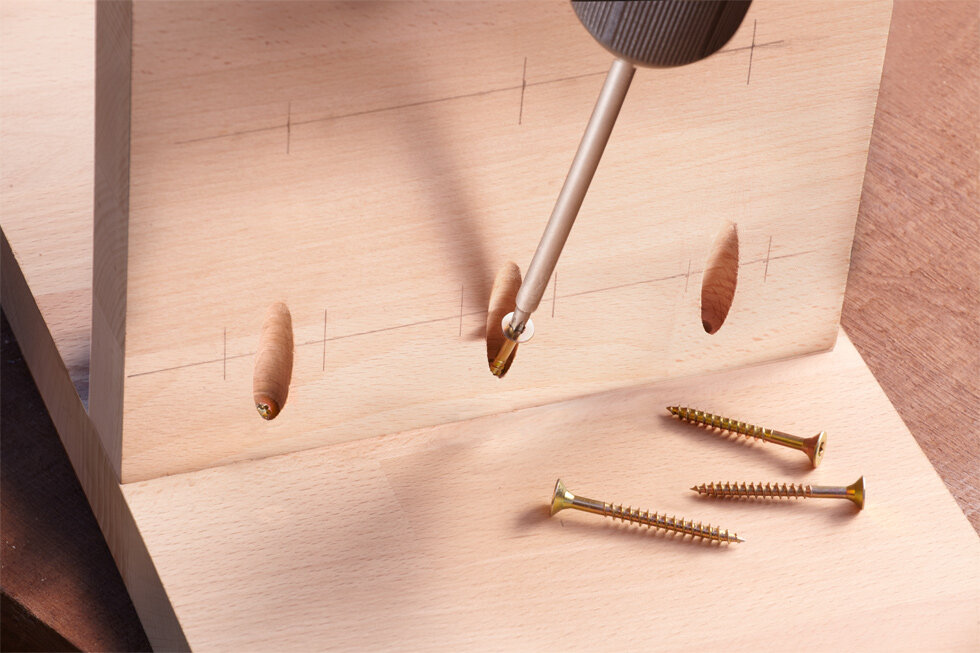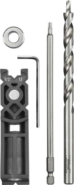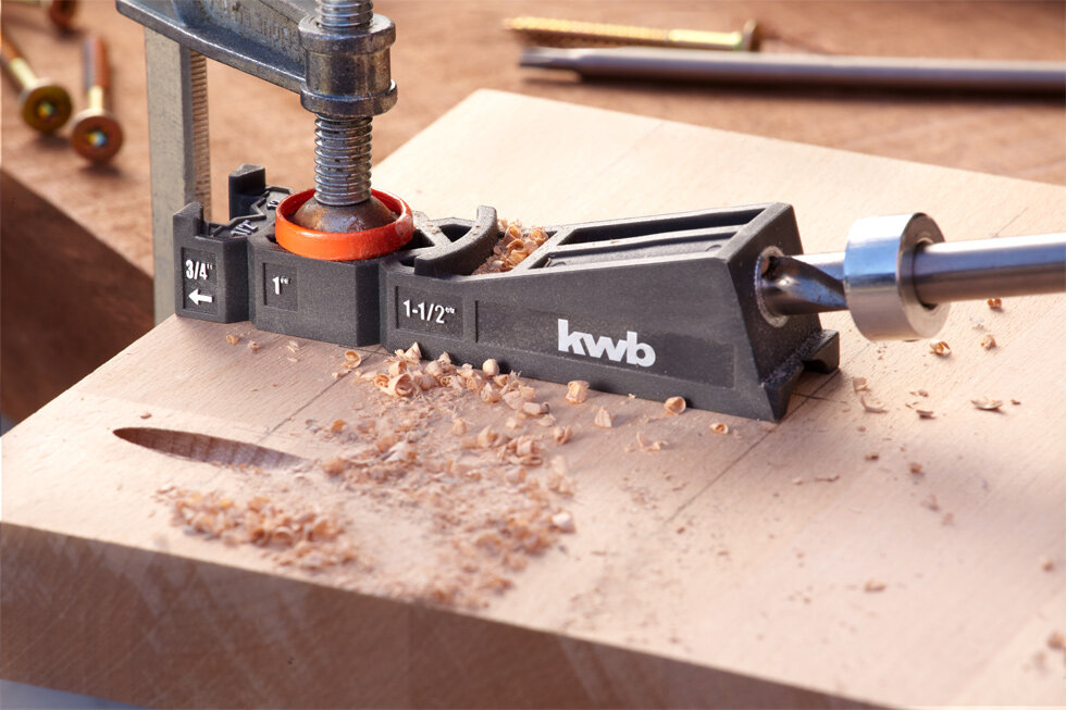 Mit der 5-teiligen kwb Taschenloch Bohrschablone gelingt jede Eckverbindung, sogar auf Gehrung können Holzbretter verbunden werden. Die Bohrschablone ist für eine Fülle von Brettstärken einsetzbar, weil sie für Dicken von 12…38 mm konzipiert wurde. Durch die kompakte Bauform ist die Bohrschablone vielseitig einsetzbar. Daher eignet sie sich hervorragend für kleinere und mittlere Möbelprojekte, Regalbau und sogar für Reparaturen. Durch das metallische Druckstück und die kompakte Bauform kann die Taschenbohrlehre mit jeder gängigen Schraubzwinge gespannt werden. Die richtige Bohrtiefe wird mittels des auf dem Holzbohrer einstellbaren Tiefenstopps erreicht. Mit dem Sechskantstift-Schlüssel wird der Tiefenstopp auf dem Holzbohrer gespannt. Arbeiten wie die Profis - stabile Eckverbindungen schnell und einfach selbst herstellen. Dazu werden handelsübliche Schrauben der entsprechenden Längen mit flachem Kopf verwenden.